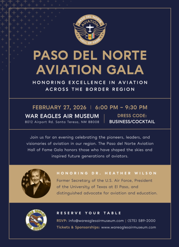 We're gearing up for our annual Paso del Norte Aviation Hall of Fame on February 27, 2026, and we need your help to make it a huge success! As always, a great event starts and ends with a smooth setup and breakdown. Your support in these crucial volunteer shifts would make a world of difference.